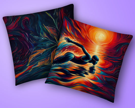 Abstract Swimmer Art Pillow, Swimming Gift, Decor