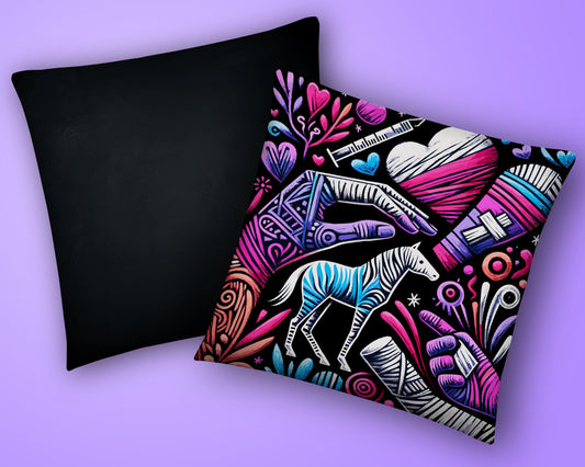Abstract Zebra Pillow, Whimsical Animal Cushion, Home Decor