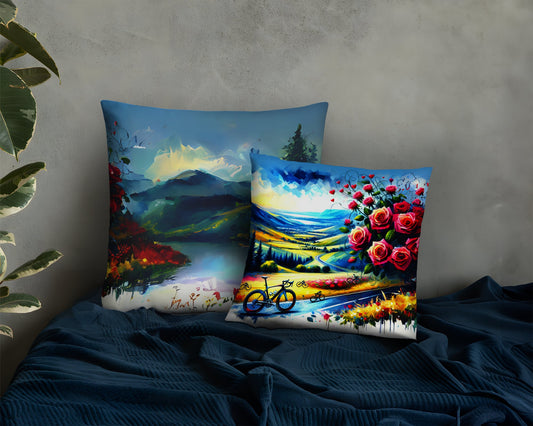 Vibrant Cycling Landscape Pillow, Colorful Cyclist
