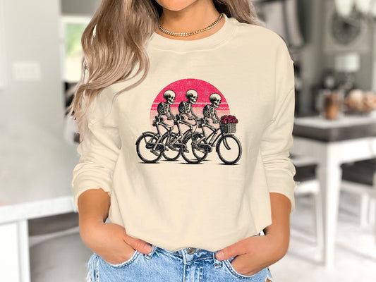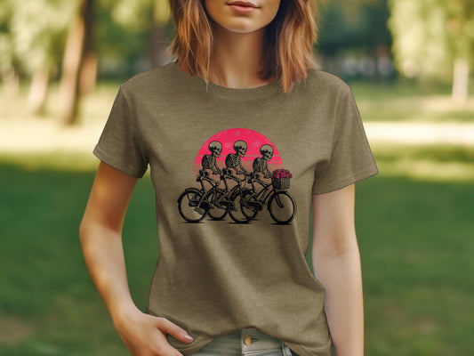 Vintage Bike Riding Skeleton T-Shirt, Retro Cycling