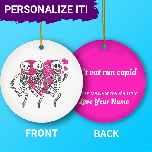 Unique Skeleton Runner Ornament, 3 in Ceramic