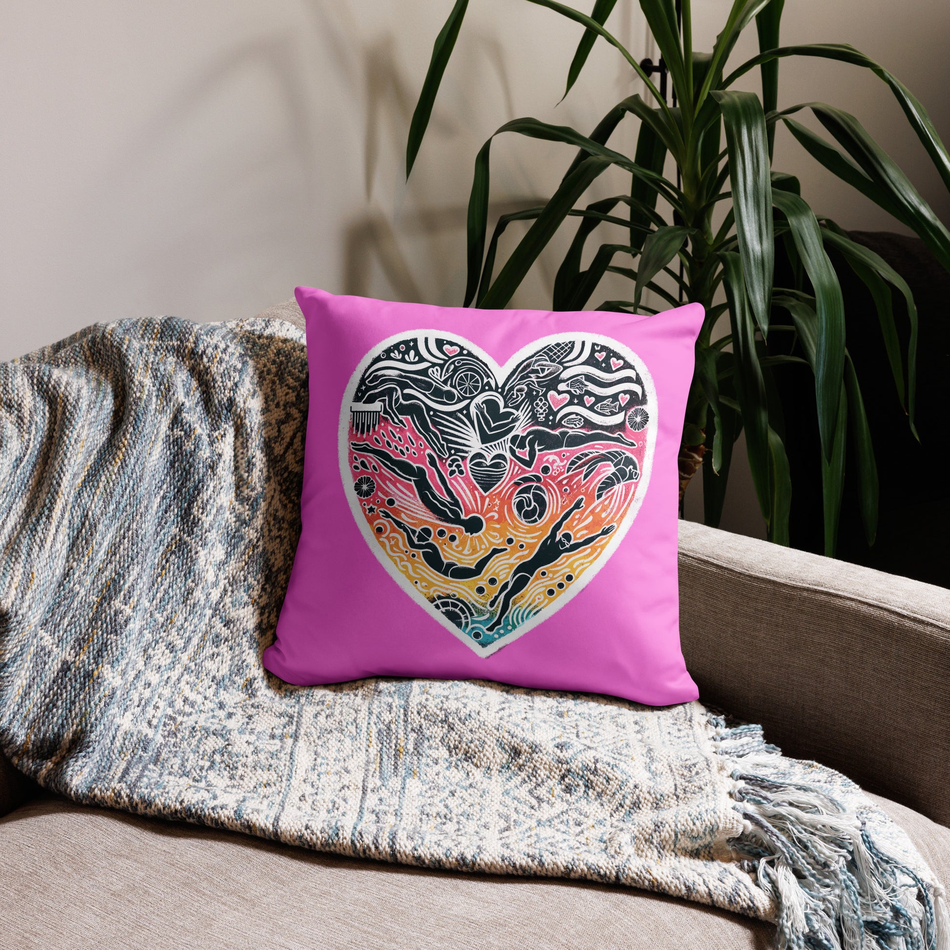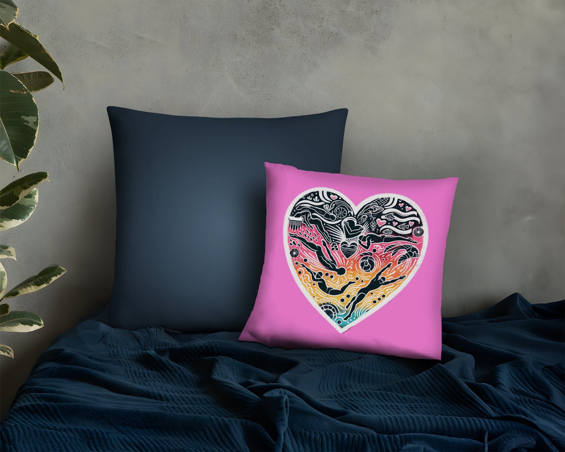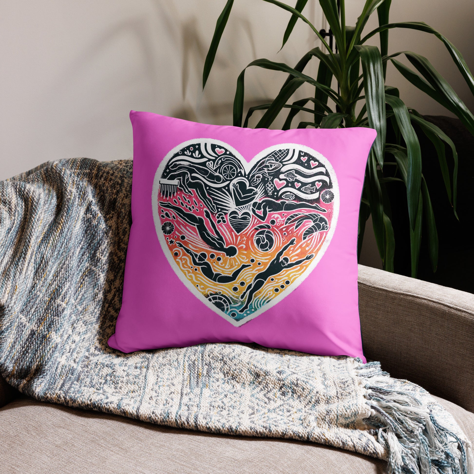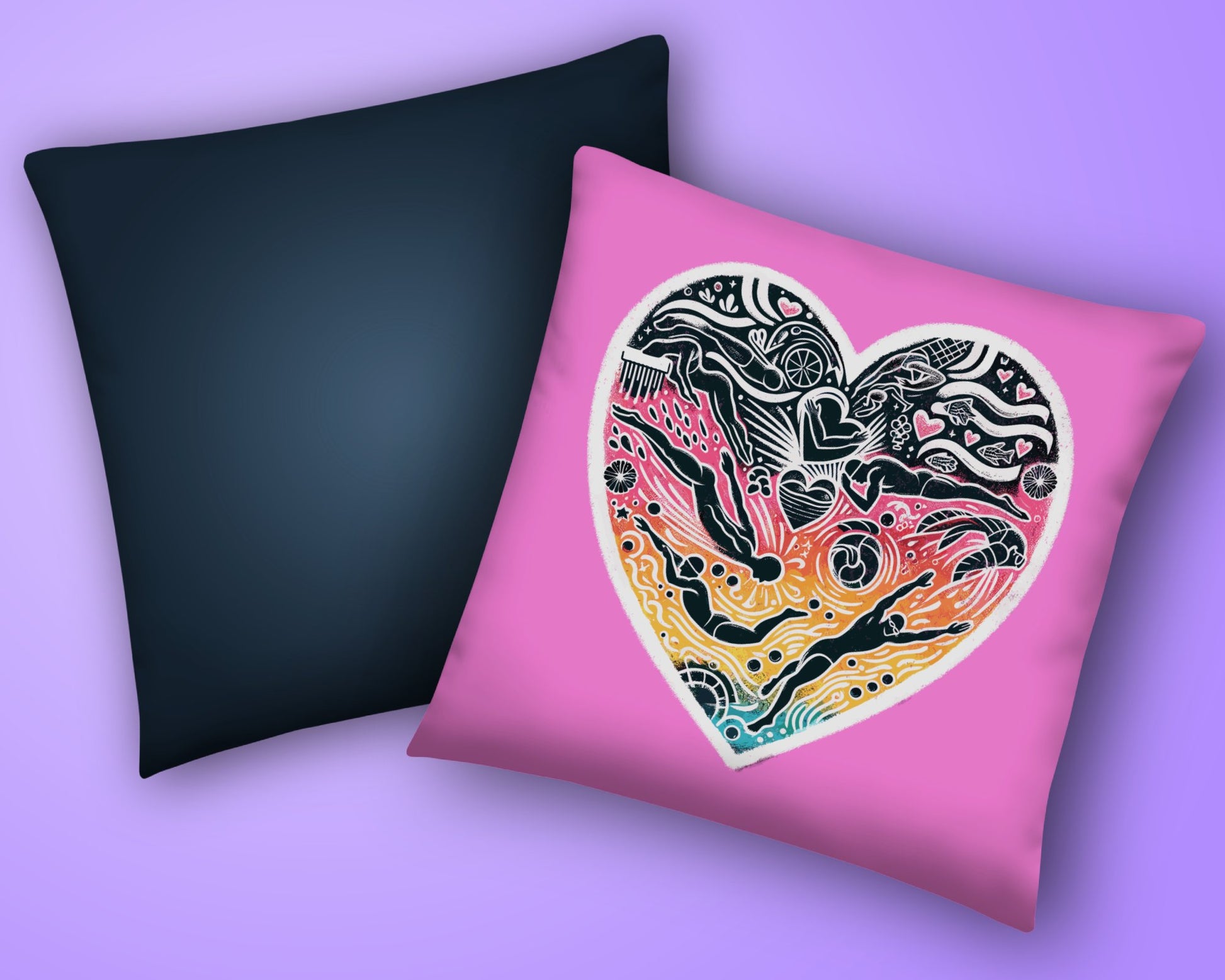 Abstract Heart Design Cushion, Love Swimming Art Pillow