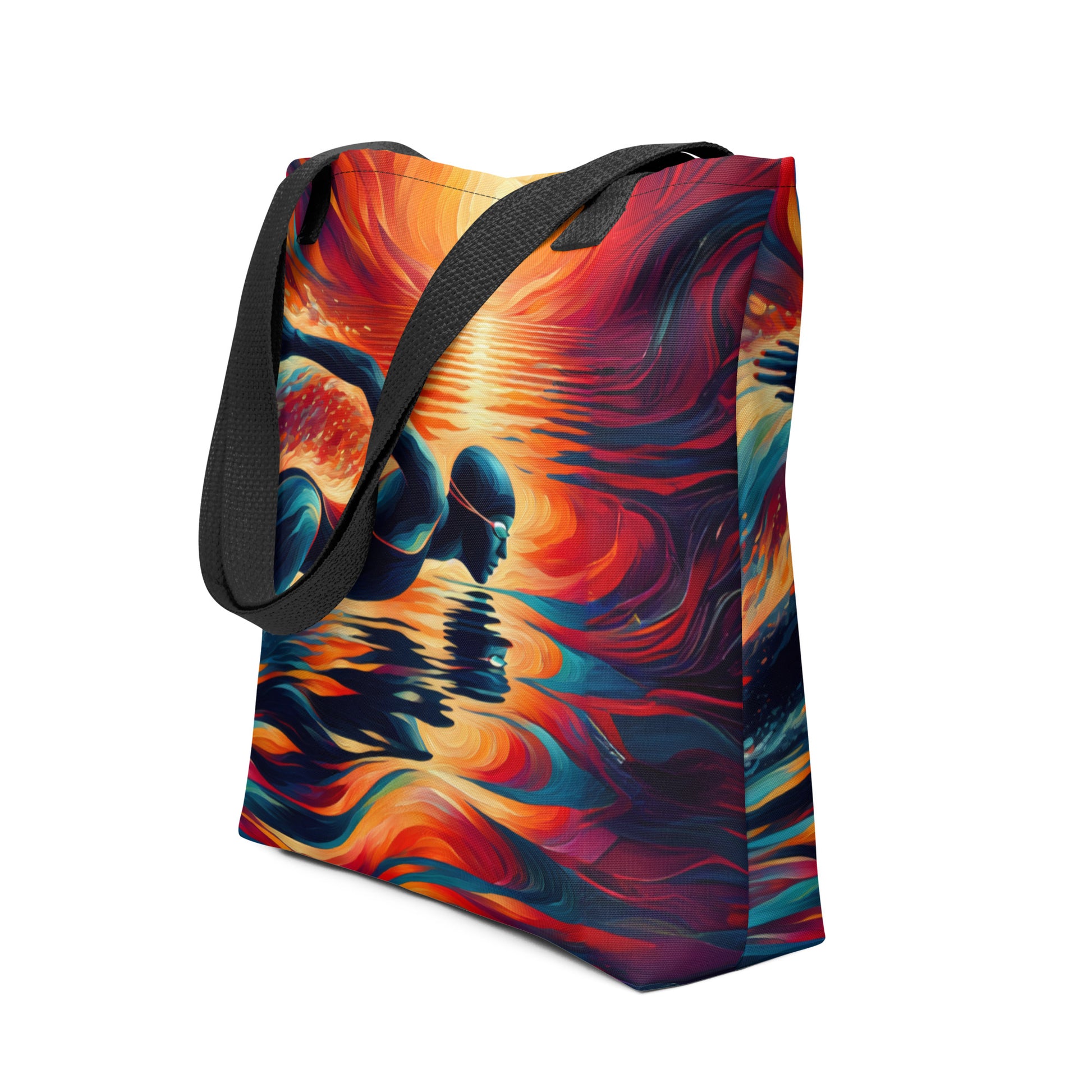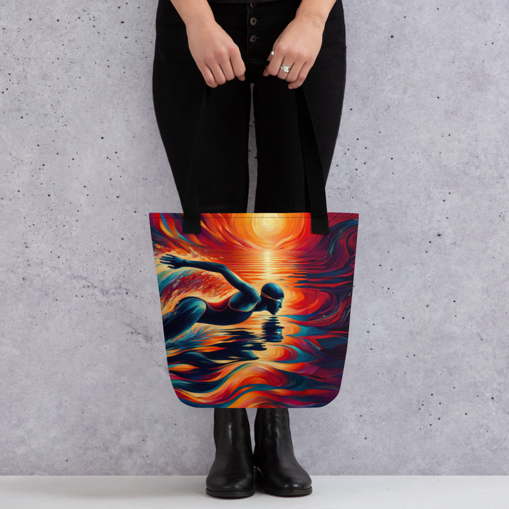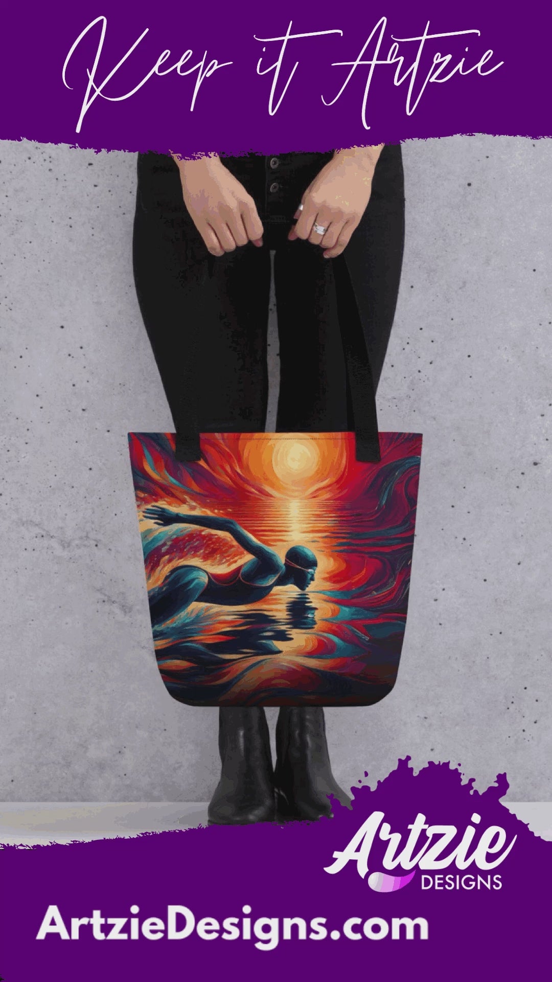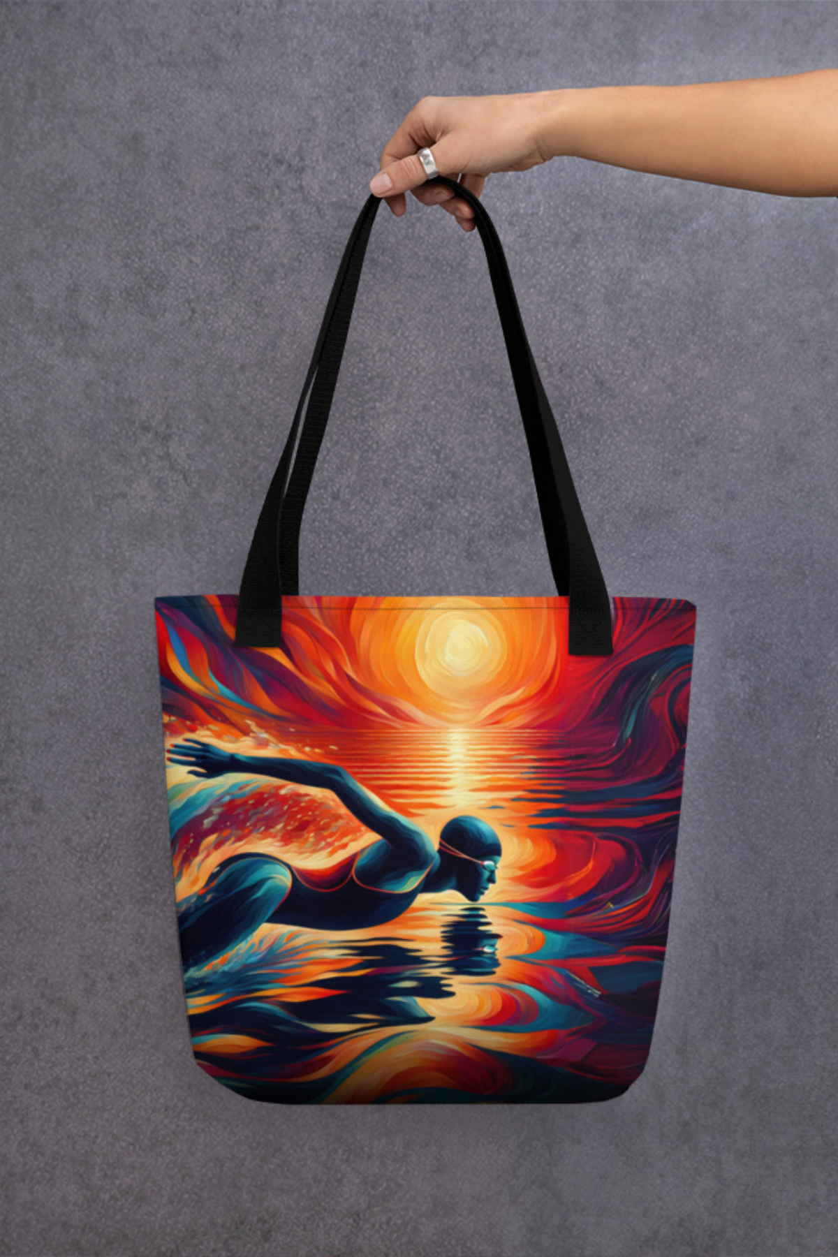 Don't wait, make a splash with this must-have item now! Take your love for swimming to the next level with the Abstract Swim gift for Swimmer Tote Bag! Made with durable materials and eco-friendly handles, this bag is not only stylish but also capable of holding up to 44lbs (20 kg) of your essentials.