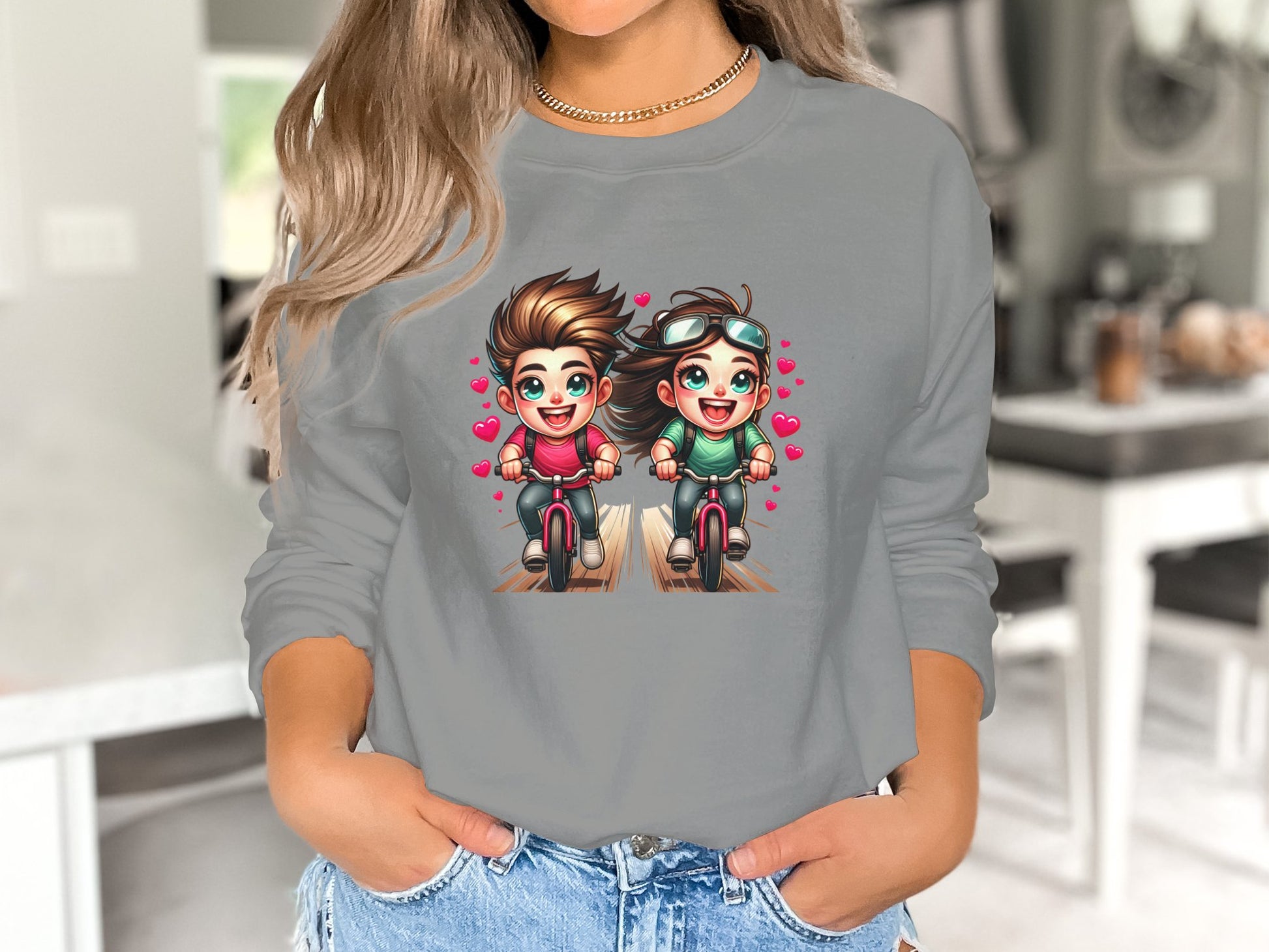 This Valentine's Day, surprise the cycling couple in your life with the perfect present: the Couples Cycling Valentines Sweater. Crafted with a blend of 50% cotton and 50% polyester, this sweater offers both softness and durability. Its air-jet spun yarn and quarter-turned design ensure a cozy and crease-free fit.