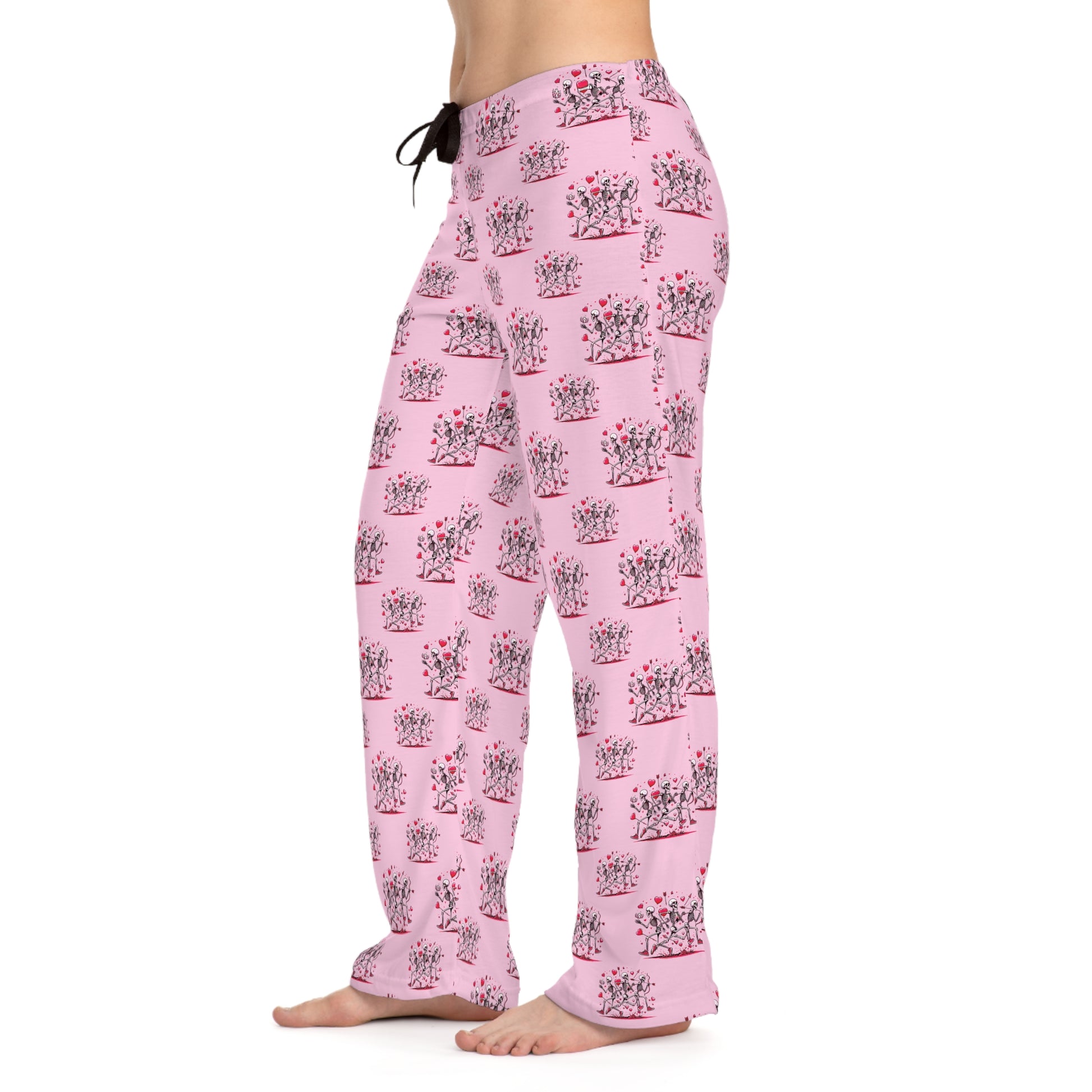 Cozy up with your partner in these playful skeleton runner Valentine's Day pajamas! Perfect for the athletic couple, these PJs feature a unique design of skeletal couples running with valentine hearts, making them ideal for those who love to run or enjoy sports-themed loungewear. Made for both men and women, they're the perfect way to celebrate love and fitness on Valentine's Day or any casual lounge day. Surprise your runner sweetheart with this thoughtful and comfy gift!