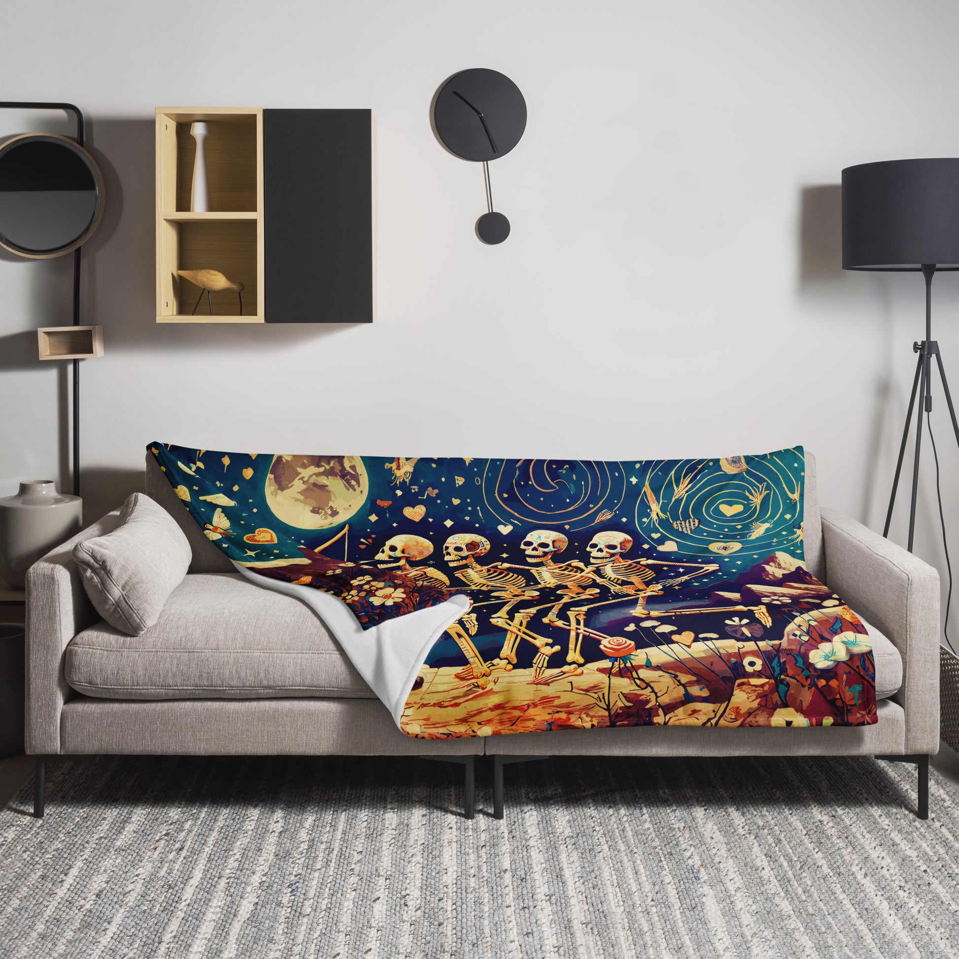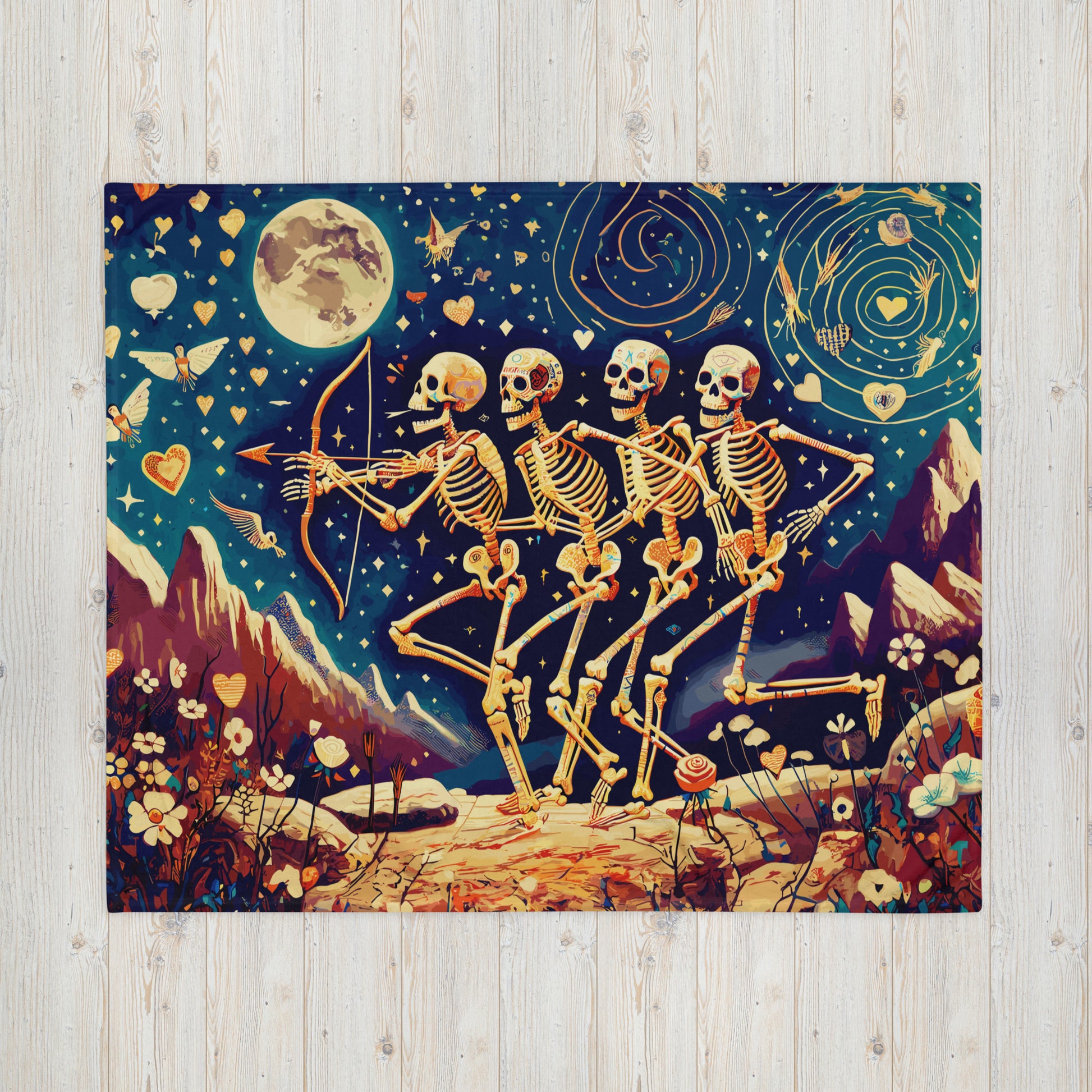 Wrap yourself in the whimsical warmth of our Skeleton Runners Blanket, the perfect Valentine's gift for the unique runner in your life. This cozy gothic throw features playful skeletons on a night-time run, making it a quirky and love-filled addition to any home decor.