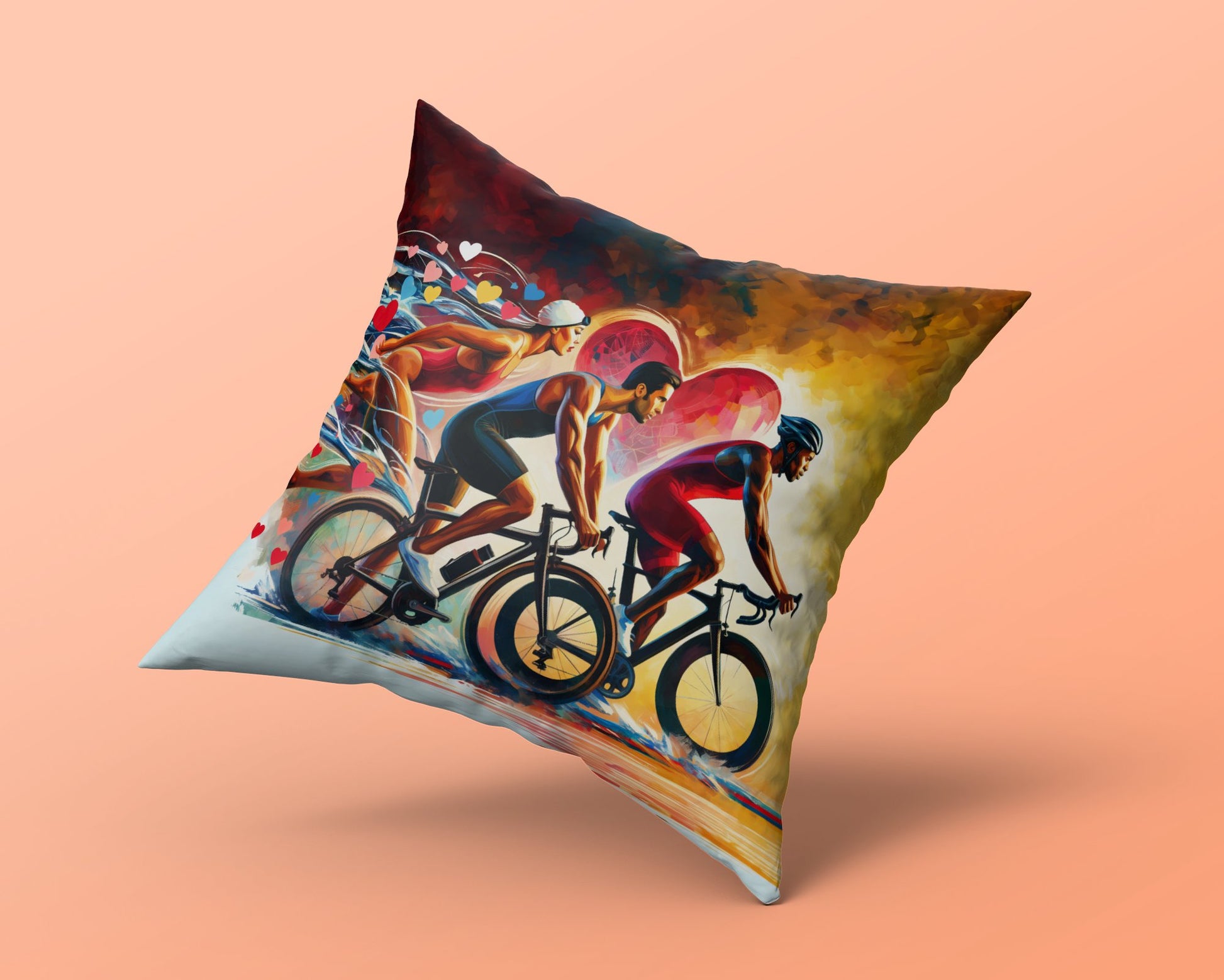 Hand-crafted with premium polyester fabric for unmatched softness and durability, and featuring a hidden zipper and easy-to-clean machine-washable case, this pillow embodies quality and comfort in every detail. Give the gift of love and luxury with this Triathlon Inspired Pillow, individually printed, cut, and hand-sewn using premium 100% polyester fabric. From the eye-catching design to the meticulous stitching, every detail reflects our commitment to quality and comfort.
