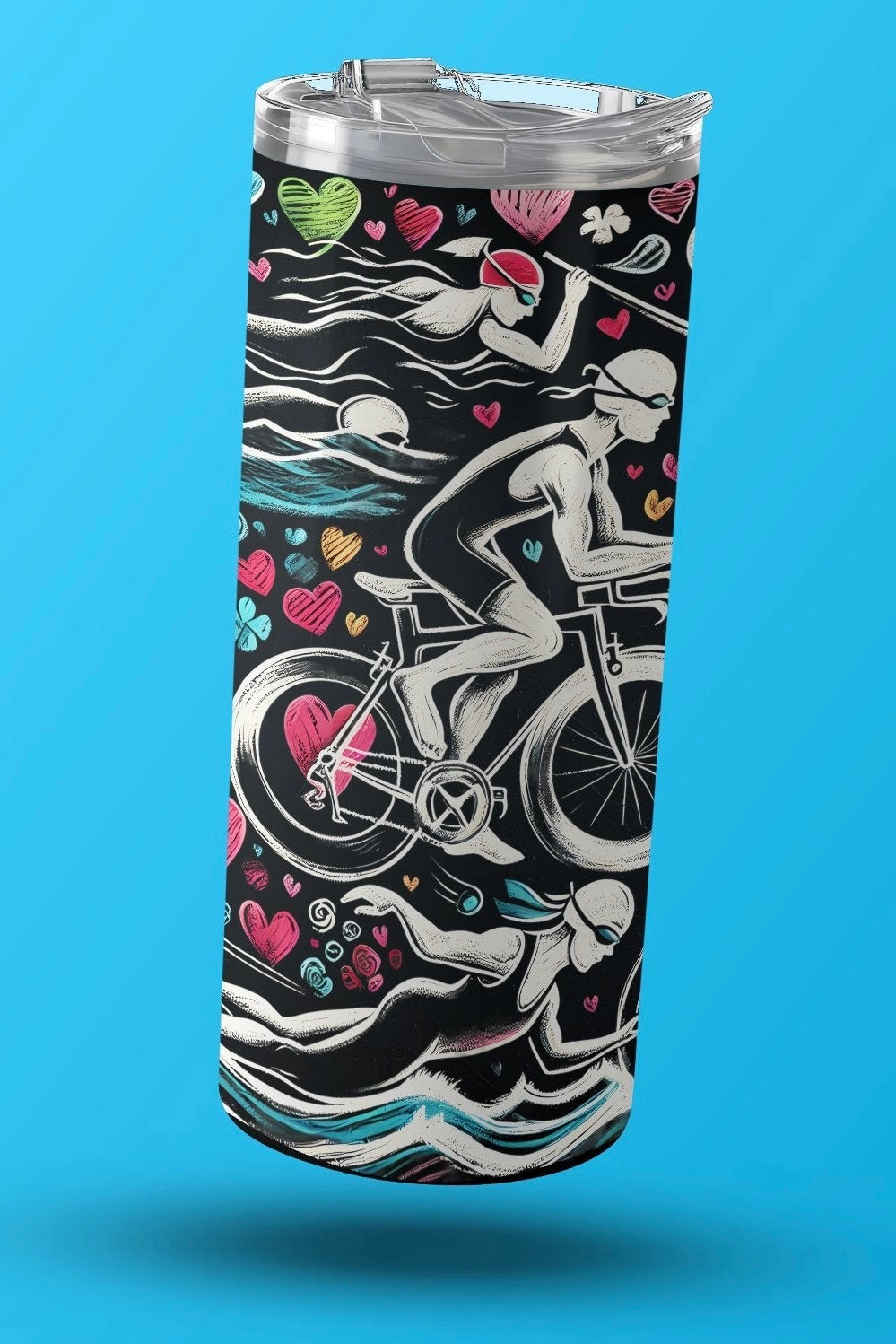 Triathlon Tumbler Personalized Chalk Art Gift for Him
